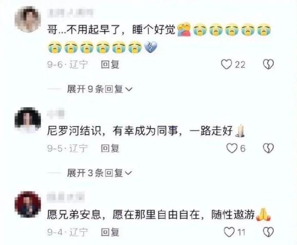 早在9月份,就有网友在评论区表达了对他去世的哀悼和遗憾。《直播生活早高峰》的同事在评论区留言:“兄弟...不要早起,睡个好觉。”