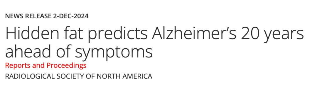②Hidden Fat Predicts Alzheimer’s 20 Years Ahead of Symptoms. Retrieved Dec 9, 2024 from https://press.rsna.org/timssnet/media/pressreleases/14_pr_target.cfm?id=2541