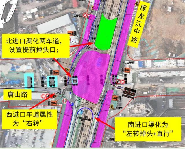 1. 原黑龙江中路向东向东转动宜川路的车辆需要选择西辅道直行到唐山路口掉头,沿着黑龙江中路向北转动到宜川路;