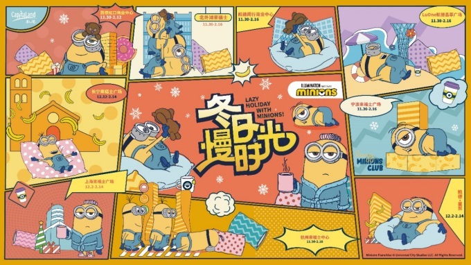 2024年12月12日至2025年2月14日, 长宁来福士钟楼“小黄人冬日慢时光”圣诞新年主题展开。这次主题展是凯德集团首次与Universals联手。 Products & Experiences(全球产品和购物体验)呈现给广大消费者和热爱“小黄人”的朋友带来惊喜、温暖、舒适、可爱的奇妙旅程,让欢笑和温暖成为贯穿整个迎新季节的温馨旋律。