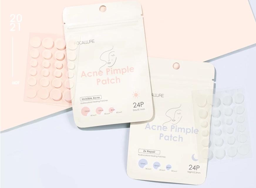 FOCALLURE的防水祛痘贴分为日用和夜用,强调不怕脱落:日用0.1mm超薄透明,能轻度脓化,覆盖痘痘,适合化妆时使用;晚上用0.3厚的mm,强力吸收痘痘渗出液,能迅速消肿,杀菌消炎,达到双重修复效果。