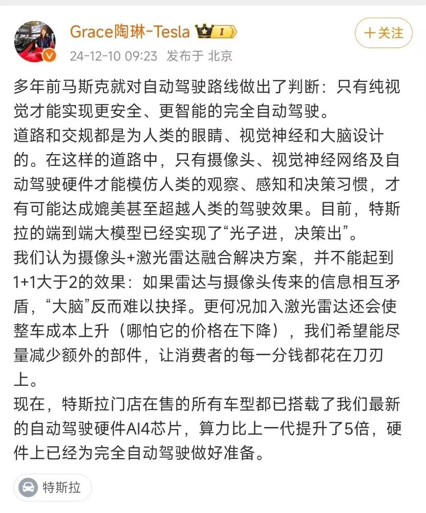 当然,特斯拉目前的技术状态是汽车公司代表最有异议的。尽管到目前为止,特斯拉还没有公布其技术细节,但许多人已经从现有的信息中发现了一些蛛丝马迹。特斯拉全球副总裁陶琳最近在微博上透露,特斯拉目前的大模型已经达到了“光子进入,决定”的效果。考虑到分段带来的信息损失,很多人推断特斯拉实际上已经实现了一个从一个到一个的大模型,大参数非常大。