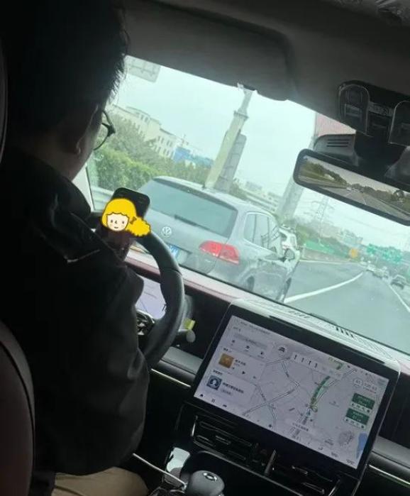 该女子向警方提供了违法行为的照片。照片显示,司机正在高速公路第二车道上行驶。这辆车的左前方不远处有两辆车,其中一辆靠近这辆车的车似乎正准备换到第二车道。虽然离前面的车很近,但是这个人的视野还在手机屏幕上,手机放在方向盘上,处于播放状态。图中是一个美女。