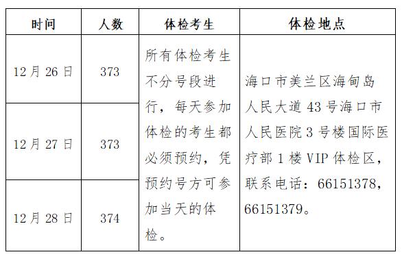 海口市2025年高考单报生体检时间定为12月26日至28日。