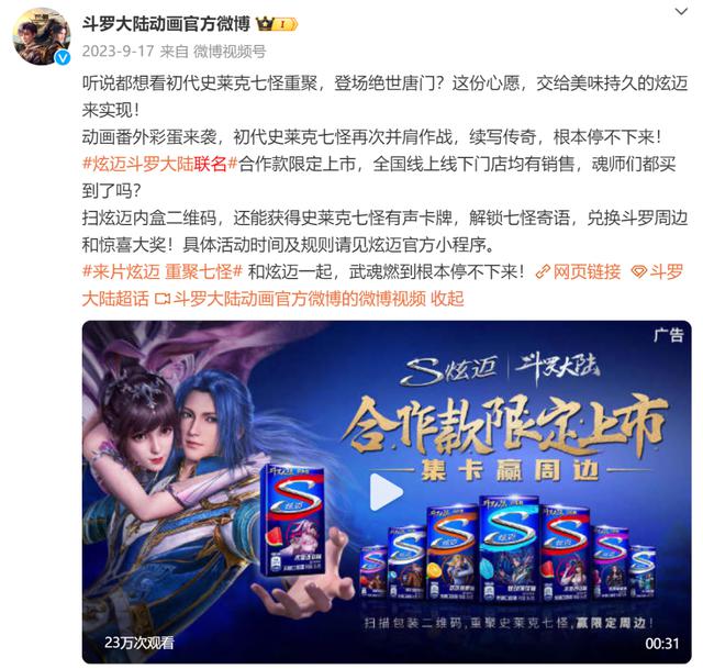 多点开花,《斗罗大陆》通过联合合作,从二次元进入三次元的衣食住行,完成了动画。 IP 升维成长到品牌。