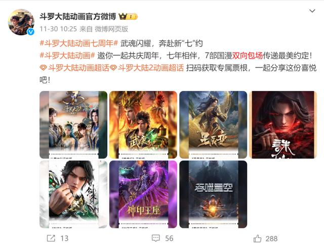 七年没有断更,七周年和七部国漫双向租场,可见其腾讯视频动画大哥的排场。