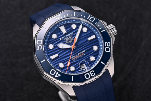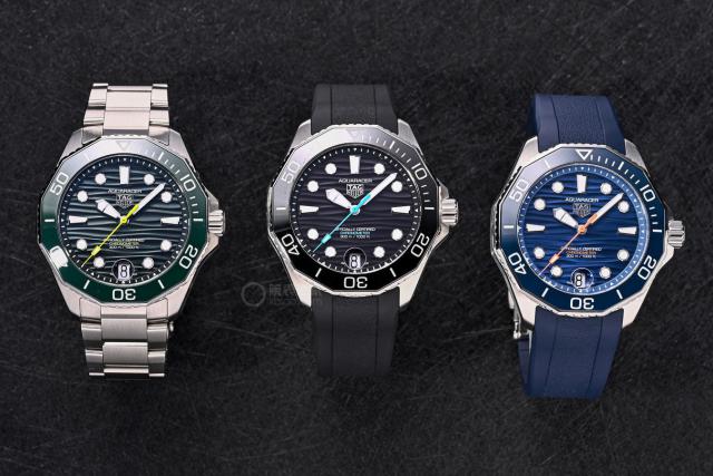 要说今年的外貌提升最为明显,那一定不是泰格豪雅全新的竞潜。 300 潜水表莫属,与老款相比,新款在尺寸上不仅将 43 mm表径缩小到 42 mm,薄厚提升 0.5 mm达到 12 mm,表盘也换上了和 36 mm竞潜 300 波浪图案相同,其波浪装饰除提供蓝、绿、黑三种颜色外,它所呈现的效果更是让人感觉到手表瞬间活了下来,仿佛正只手表都伴随着波光粼粼的大海一起节奏。更重要的是,它还拥有前两款手表所没有的陶瓷表圈,而且还是一个陶瓷表圈, 12 边形的。另外,它是全新的 TH31 机芯,是由 AMT 根据泰格豪雅的需要,机芯厂专门定制而成,不但拥有 80 小时动储和天文台认证,还有日内瓦图案打磨和泰格豪雅巨盾。 Logo 镂空自动陀的造型,最后是它的造型 28100 其价格使其具有无敌的性价比。