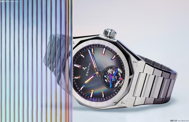 手表评价:从几年前开始,真力就和街头艺术家费利佩 · 潘通合作过。这位艺术家的作品非常时尚。他擅长使用电子脉冲、光谱、错视等技术。此外,他还使用极其鲜艳的颜色或简单但对比鲜明的黑白来创造独特的抽象数字视觉艺术。不久前,品牌和潘通发布了他们的第三款合作手表,而且仍然是 DEFY,但是这次双方都选择了陀飞轮这种复杂的功能风格,来玩艺术效果。41 八边形精刚表壳毫米,十二边形表圈延续真力时, DEFY 一贯的标志性设计,但是在外壳外观的衬托下,费利佩 · 潘通的创新理念让盘面再次展现出光影变化的美感,金属色镜面涂层覆盖在彩色蓝宝石水晶表盘上,呈现出梦幻迷离的彩虹变色。当然,手表盘上最吸引人的还是不断地运行陀飞轮,真力时还特别设计了陀飞轮的表桥,成为潘通的标志性闪电图案。运动方面,手表搭载 El Primero 3630 高振频自动机械机芯,动力储存达到 60 与此同时,这位艺术家独特的色彩风格也融入到机芯中,彩虹 PCD 星形摆陀的镀层也特别引人注目。