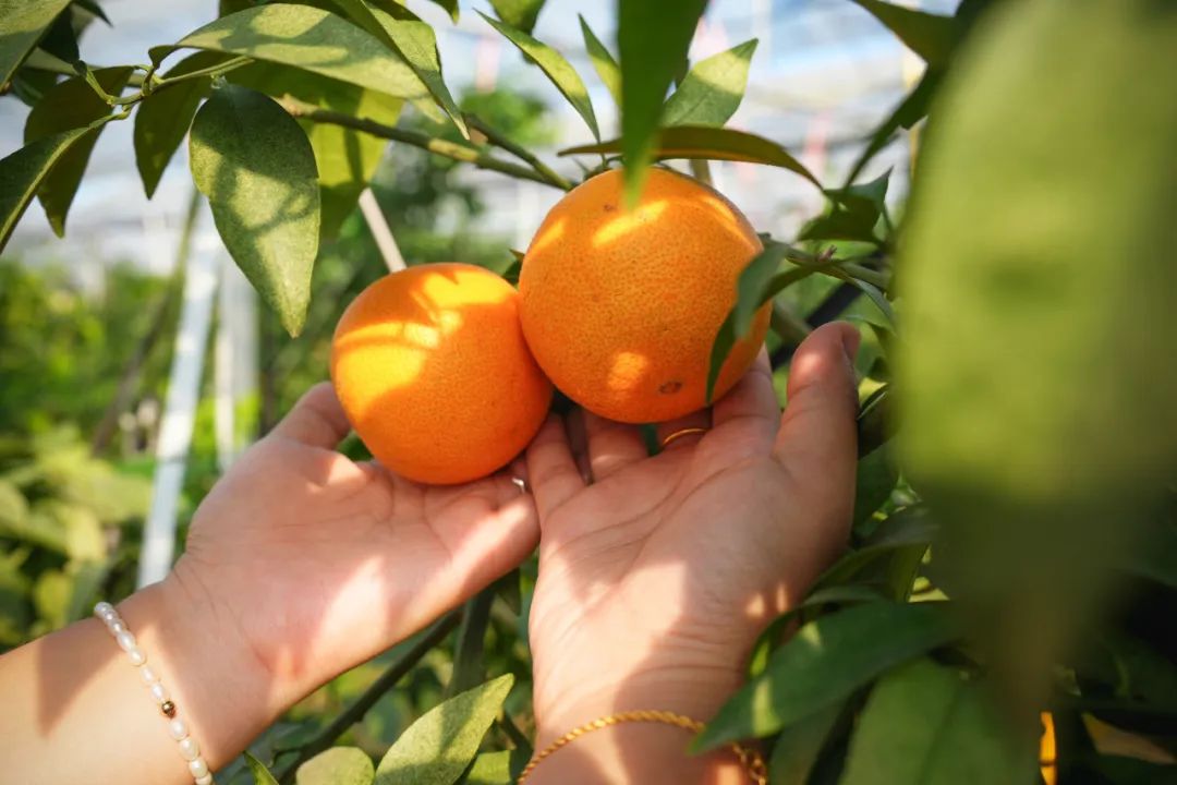 气温急剧下降,“红美人”柑橘开启变色方式,逐渐从橙色变成橙色和红色。略带酸味的果肉在温度的变化中不断积累糖分,已经到了最佳品尝期。