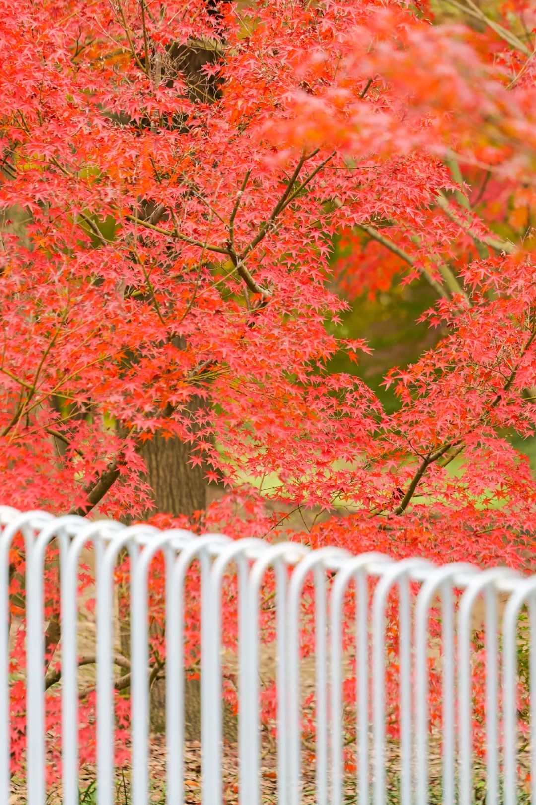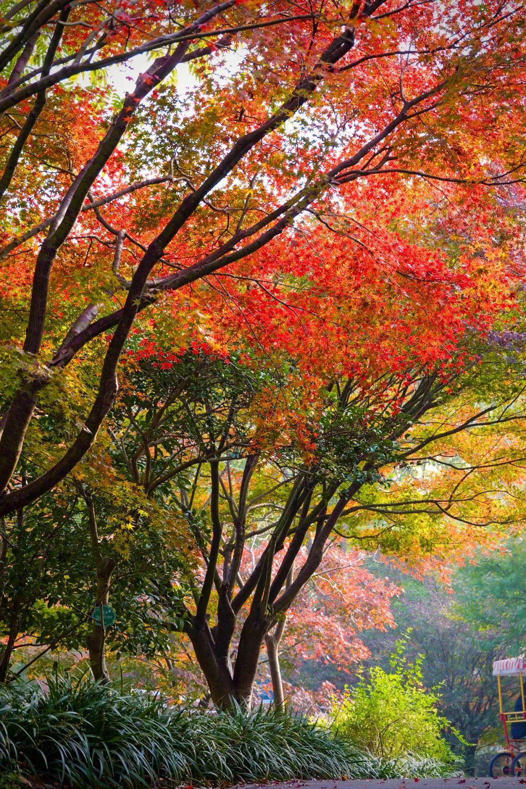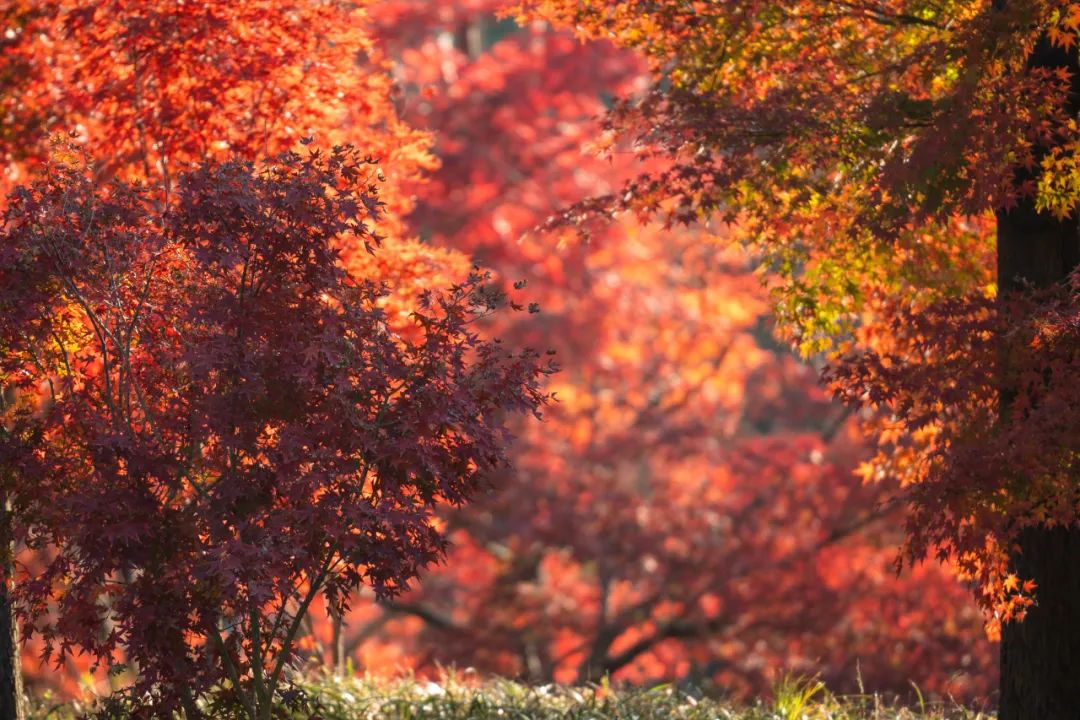 尤其是美国红枫和日本红枫,那种浓烈的红色和橙色在秋风中如画,随便拍一张照片就像是风景名片。