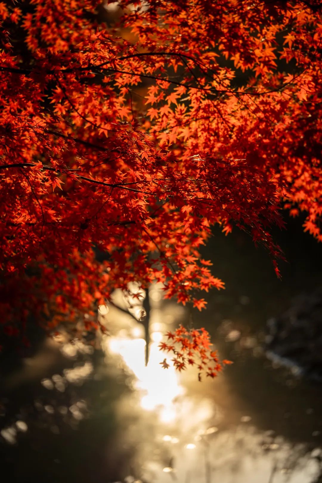 绵延成片,铺天盖地的枫叶在阳光下散发出轻盈通透的美感,树影洒在人脸上,成为最自然的腮红。