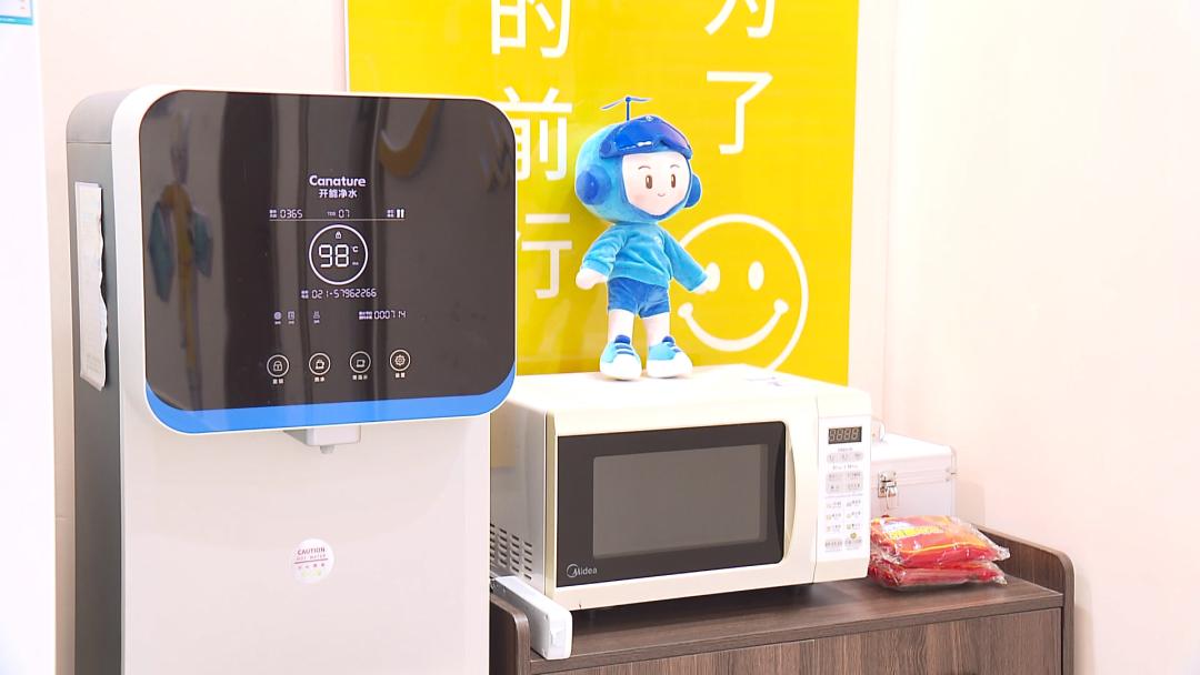 “这个地方可以让我们休息,设施也比较完善。有时候我们的骑手工作晚了,饭菜也凉了。这里的微波炉可以加热,非常方便。”饿了的送货员张国强说。