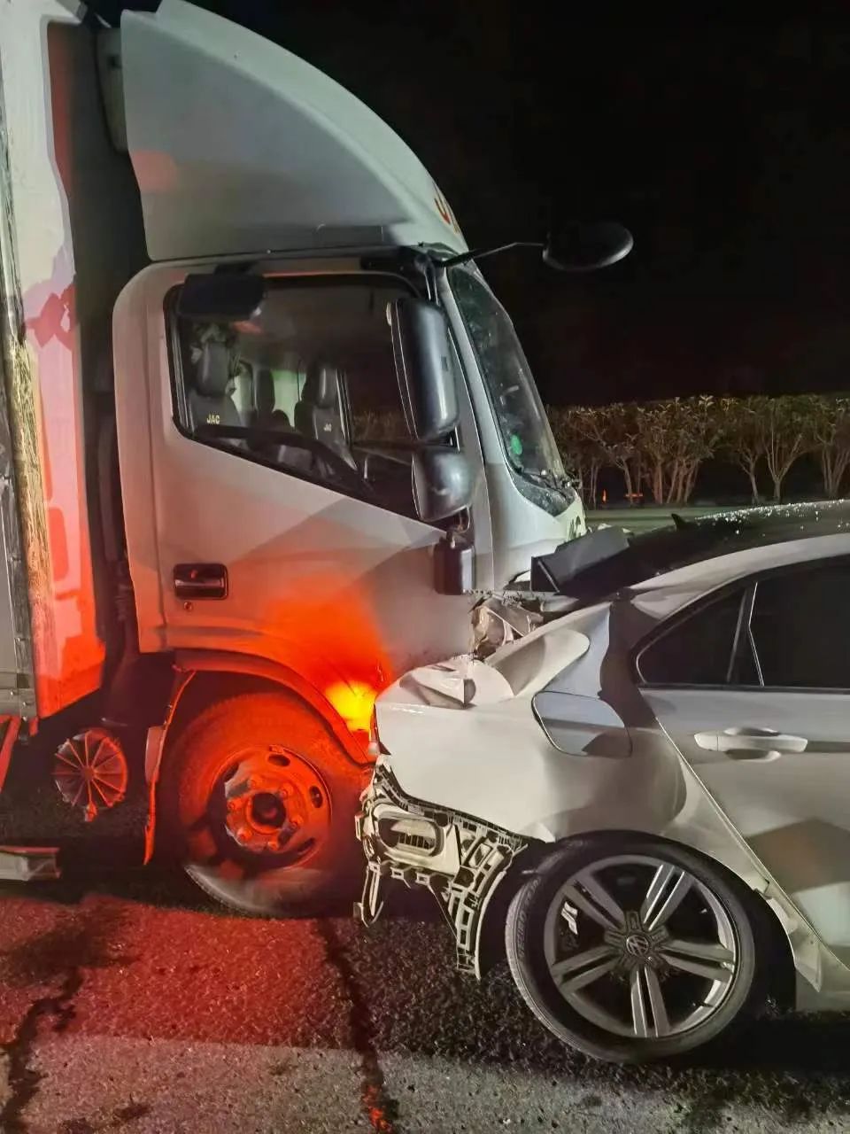 沪蓉高速湖北境内,2024年9月15日。凌晨024:08分钟左右,在区间测速终点摄像头下,慢车道上的一辆车以极低的速度行驶时,被后面的一辆轻型卡车强烈追尾。事故造成两辆车的损坏,汽车尾部的损坏尤为严重。幸运的是,没有人员伤亡。