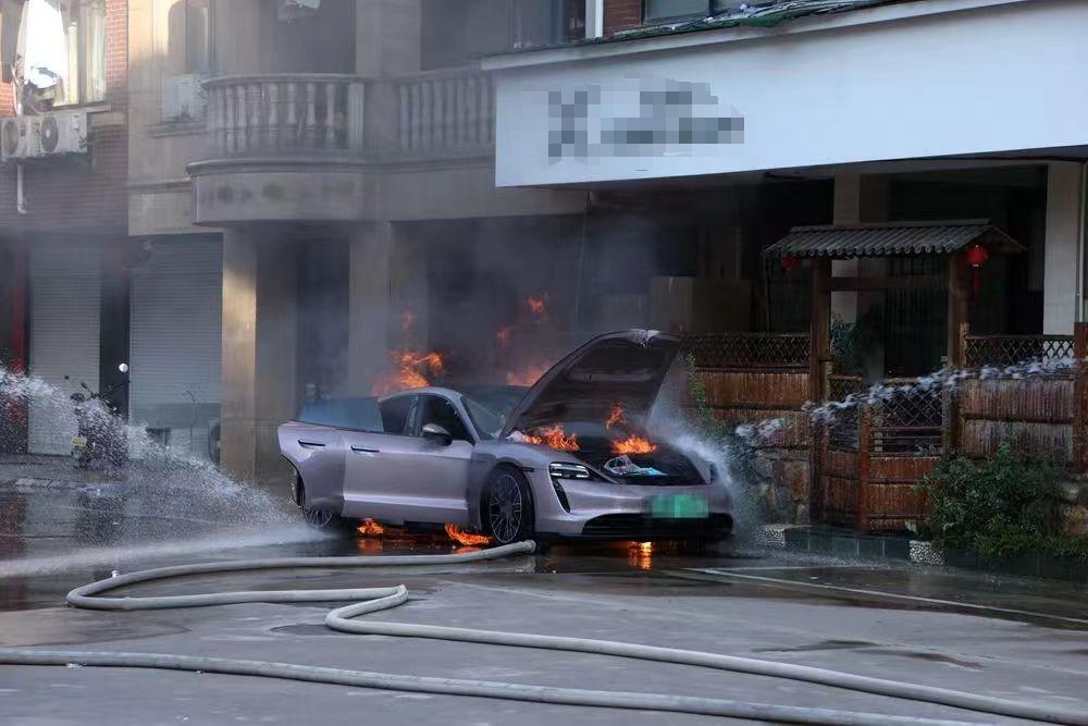 一辆新能源汽车着火了。