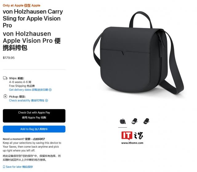 von Holzhausen Carry Sling for Vision Pro 售价 179.95 美金(IT 家族备注:目前的约定 1309 人民币),比苹果官方便携包轻薄。
