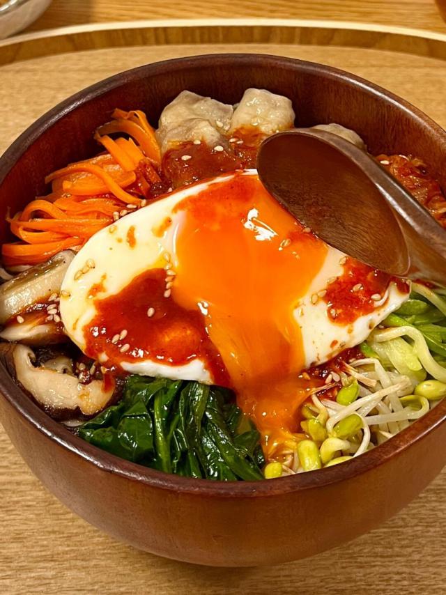 韩式拌饭可以搭配胡萝卜、西葫芦、黄豆芽、蘑菇、菠菜、肥牛、辣白菜、鸡蛋,营养丰富,味道鲜美。 ~
