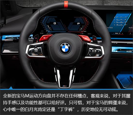 与略显低调的外观设计相比,全新的宝马 M5 旅游版的内饰气氛明显要更有气场一些,无论是精美的材料还是丰富的配置,都无愧于“奢华”二字。是的,我说的是奢侈,而不是运动。在我看来,这样的妥协并不难理解,因为在取悦司机的同时,这样的旅行车真的需要全面照顾乘客。对所谓的运动精神,全新的宝马 M5 通过宝马,旅行版也没有妥协太多。 M 运动型方向盘和中控台上的碳纤维饰板,其实已经足够了。