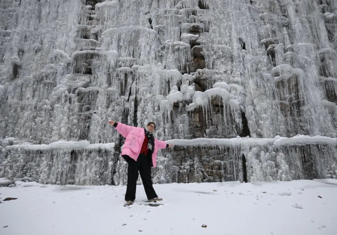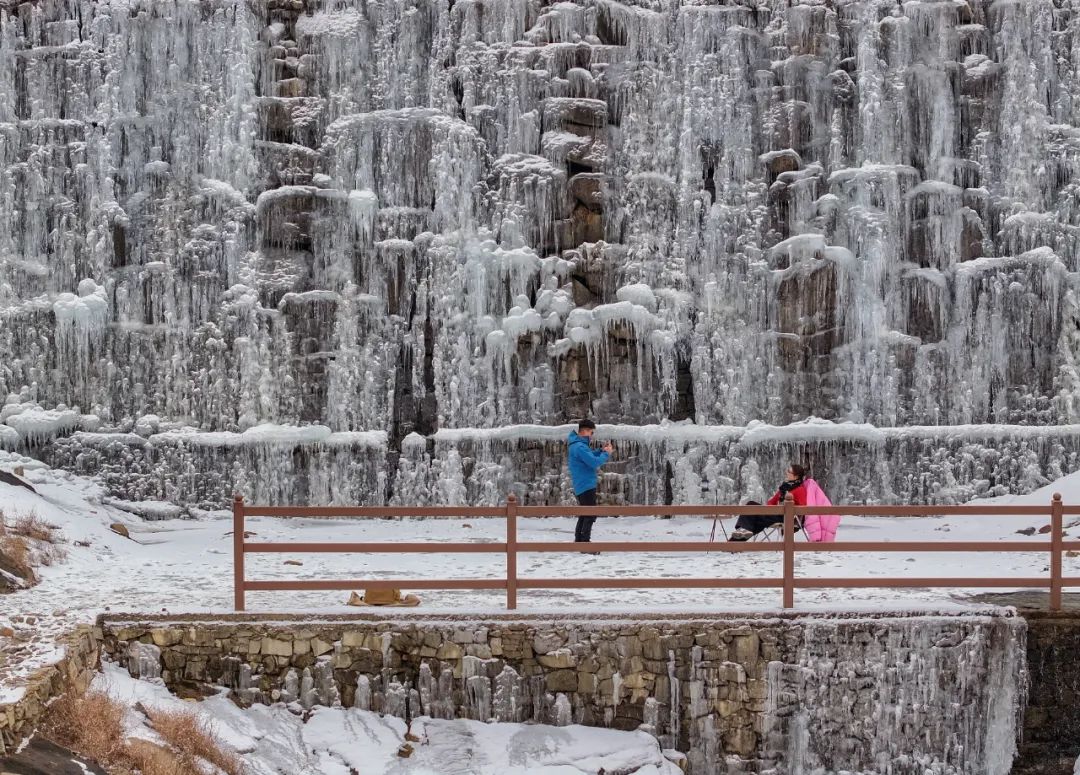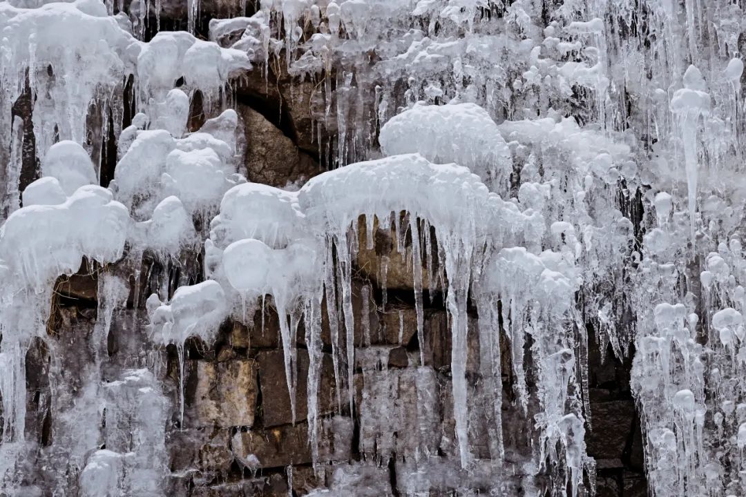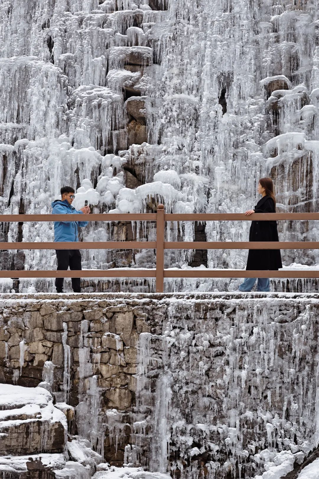 偶尔,几缕阳光透过冰瀑的缝隙。