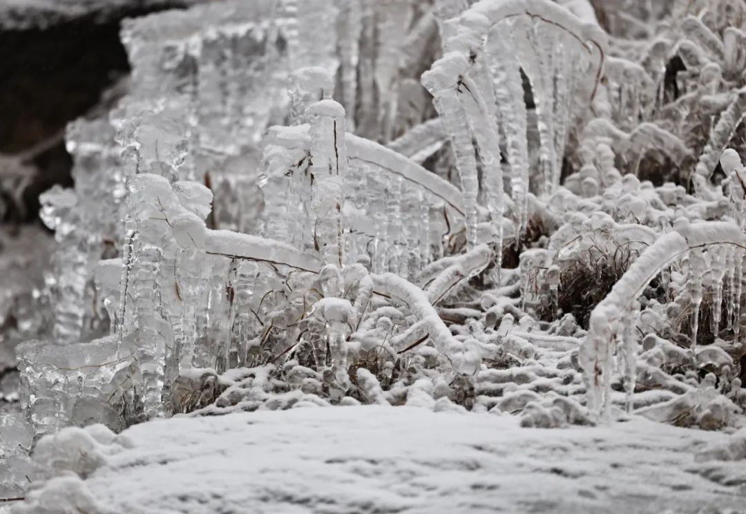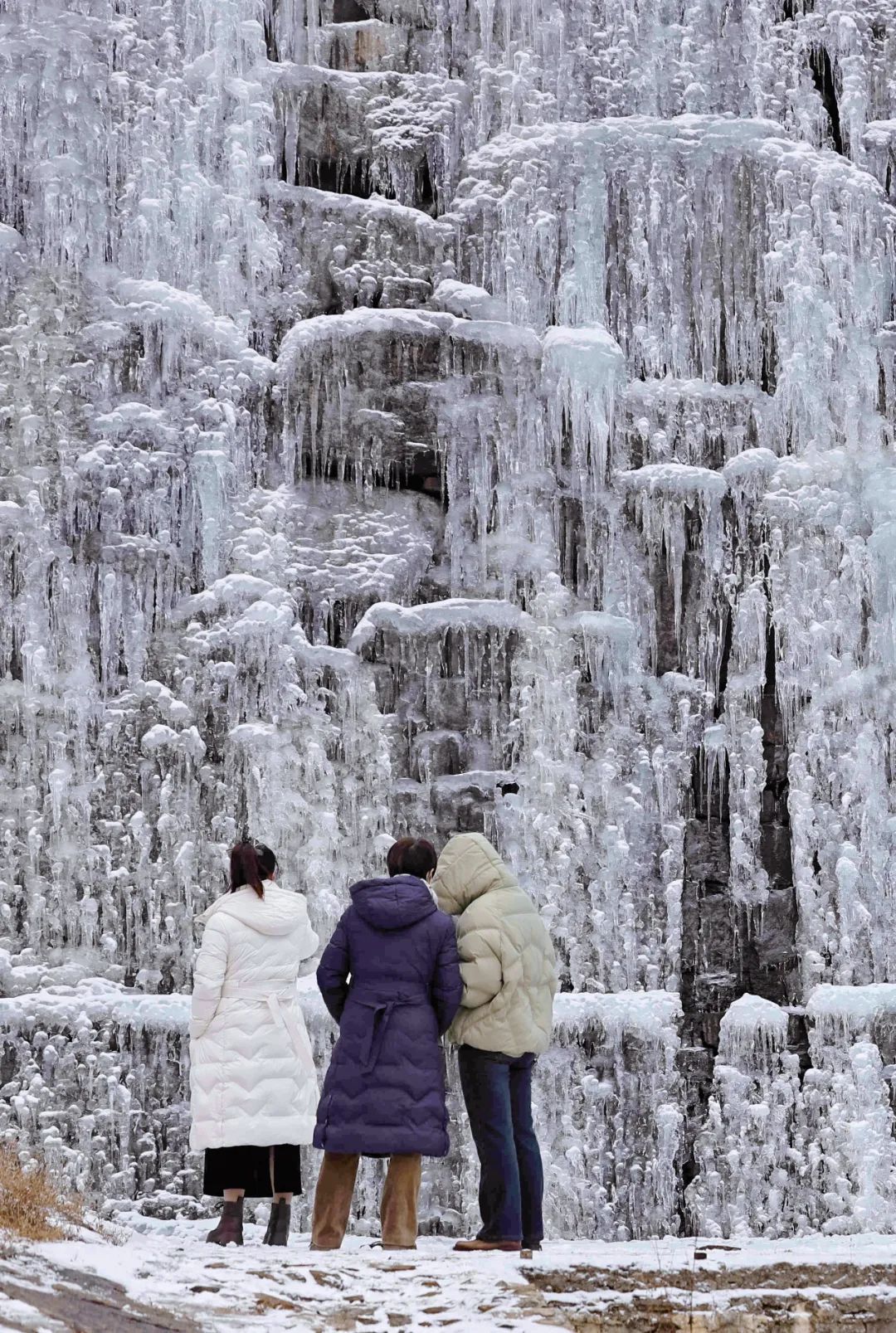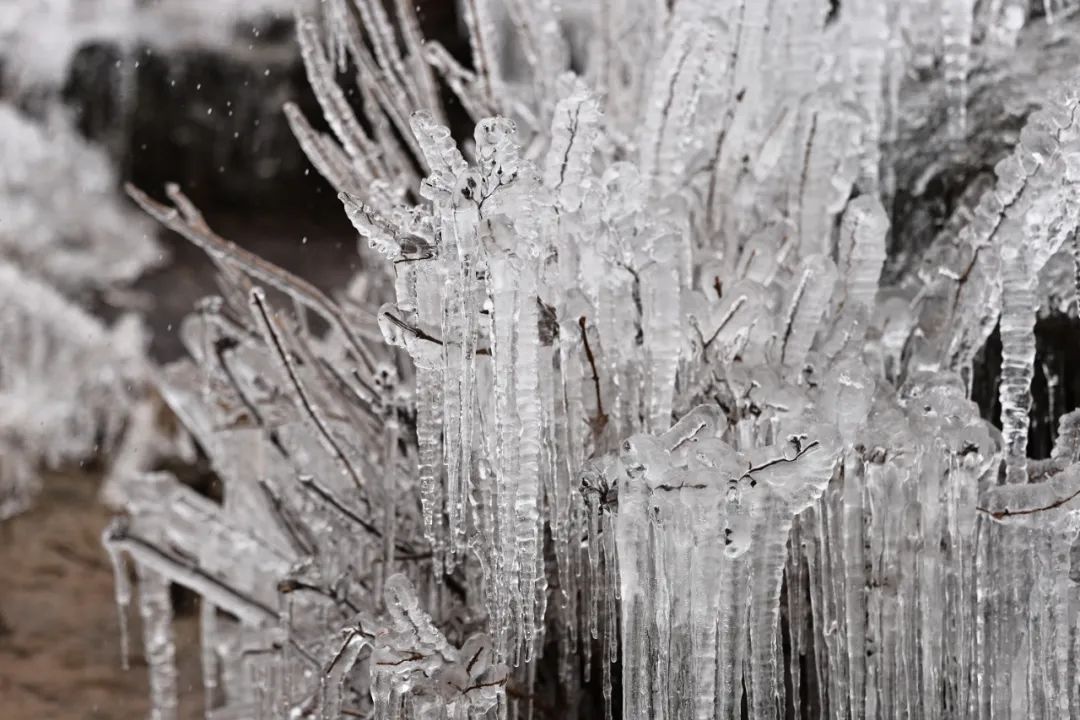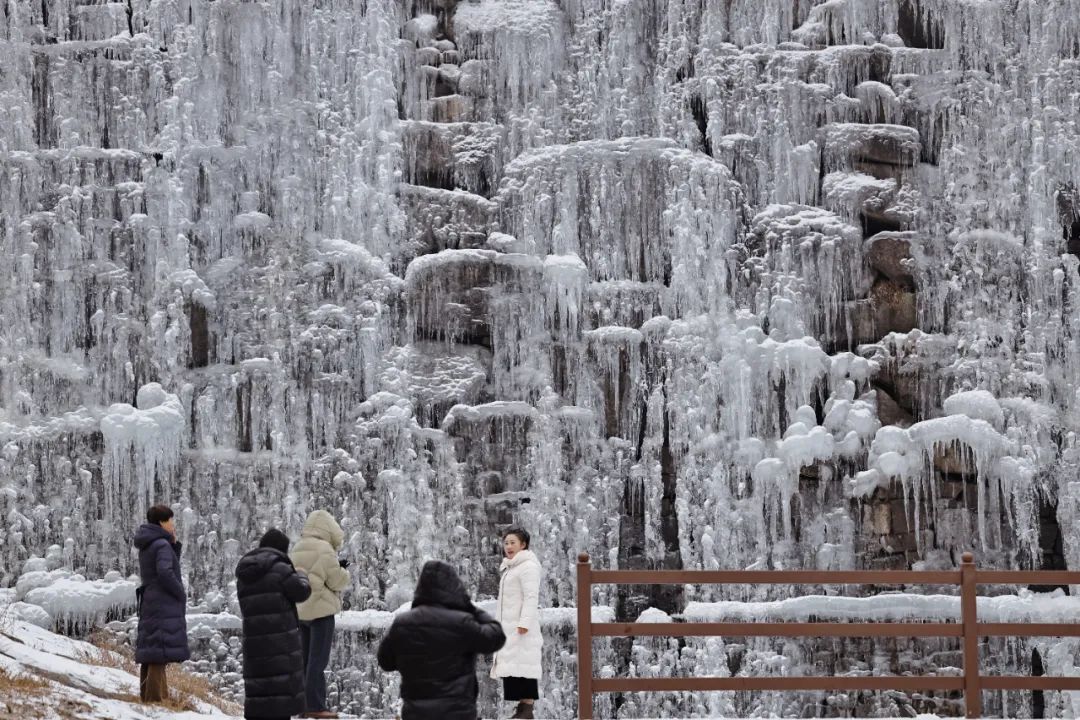 偶尔,几缕阳光透过冰瀑的缝隙。
