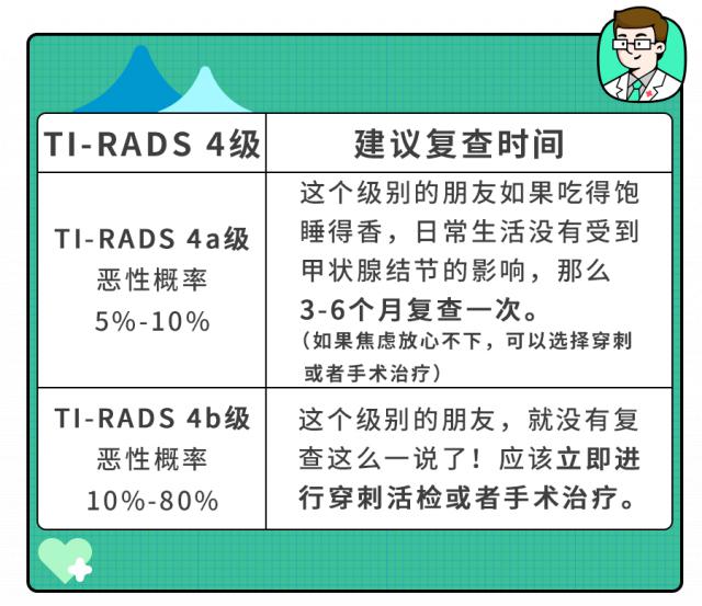 4 等级表示有恶性的可能性,在细针穿刺活检的帮助下,医生通常会得到结节的病理诊断,这是诊断结节良恶性的黄金标准。
