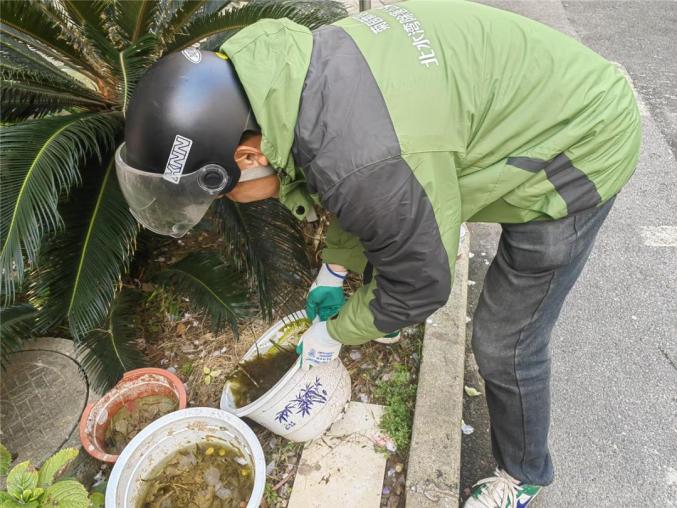 “花盆里的水很容易导致蚊子生长,所以瓶子和罐子里的水要及时清理干净。”除害员彭荣普及了居民的灭蚊技术。“不要在室内堆积太多杂物。你可以用电蚊拍等工具消灭隐藏的蚊子,也可以把家里吸尘器上的刷子拿掉,用吸力直接把蚊子吸走。”