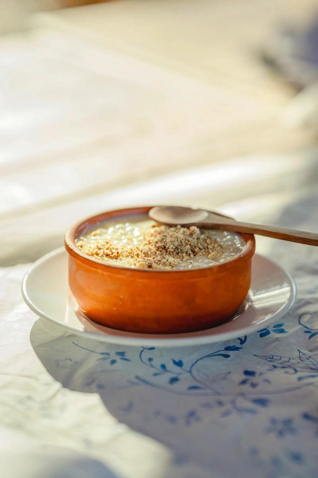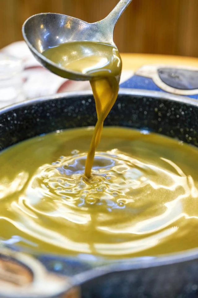 指与鱼、蔬菜等食材混合烹饪的汤。苏轼在他的《仇池笔记》中说:“罗浮颖总是吃杂菜,叫‘骨董汤’”。据说是因为当食材放入粥中时,会发出“咕咚”的声音,所以得名。寒风凛冽,为什么要解决烦恼?一碗热粥!