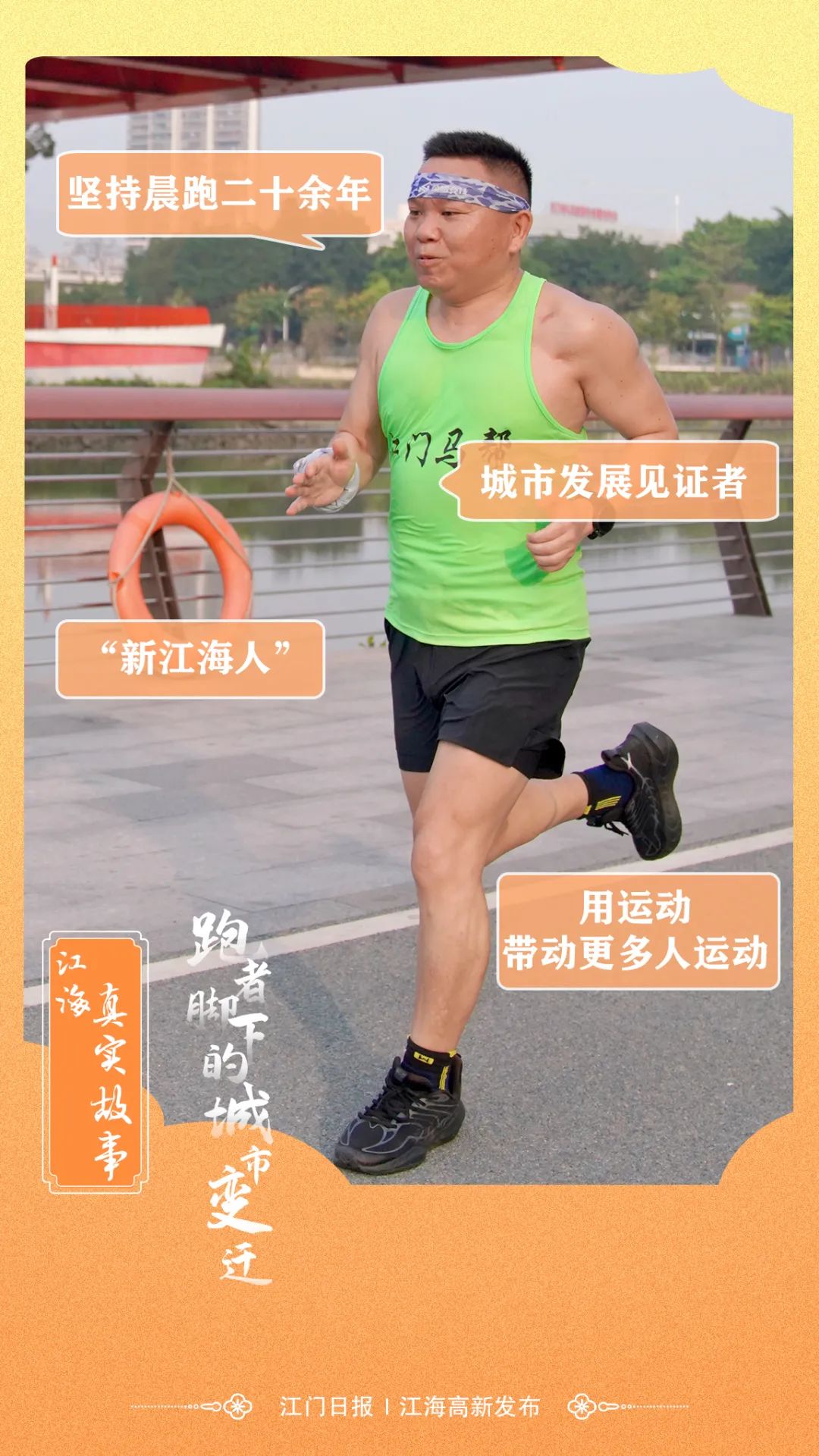 “我见证了江海从一个荒地鱼塘到现在的高层建筑和绿道。这座城市的变化就像一场马拉松,一步一步向着更好的未来奔跑。”聂华跃说,他希望江海能继续为市民提供更多的运动空间,比如增加跑步专用道、绿化和公园。