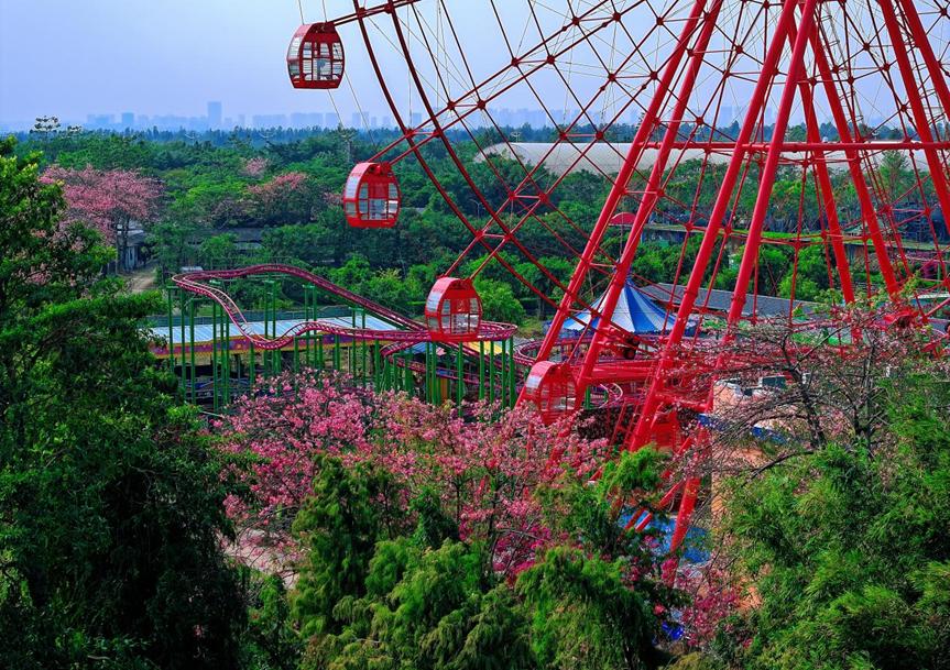 红摩天轮缓慢旋转