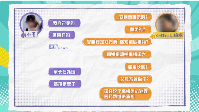 在与小欣母亲交谈时,那个提供安眠药的男孩小声说: