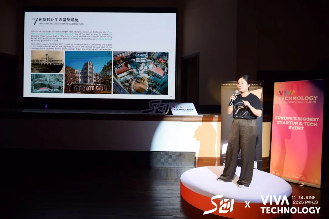 活动期间,上海创新创意设计研究院生态孵化负责人张婕发表了主题演讲。“设计”DIIS 科技 通过战略研究和产业赋能,商业“三驾马车”积极探索新技术、新产品、新业态、新模式,为产业协同创新提供了全新的范式。同时,她还分享了研究所与法国多家公司的大致合作成果,并指出国际合作对于促进创新的重要作用。“我们希望通过全链路、开放、跨界的创新生态系统,帮助更多的大中小企业实现双赢发展,见证城市创新的出现。”