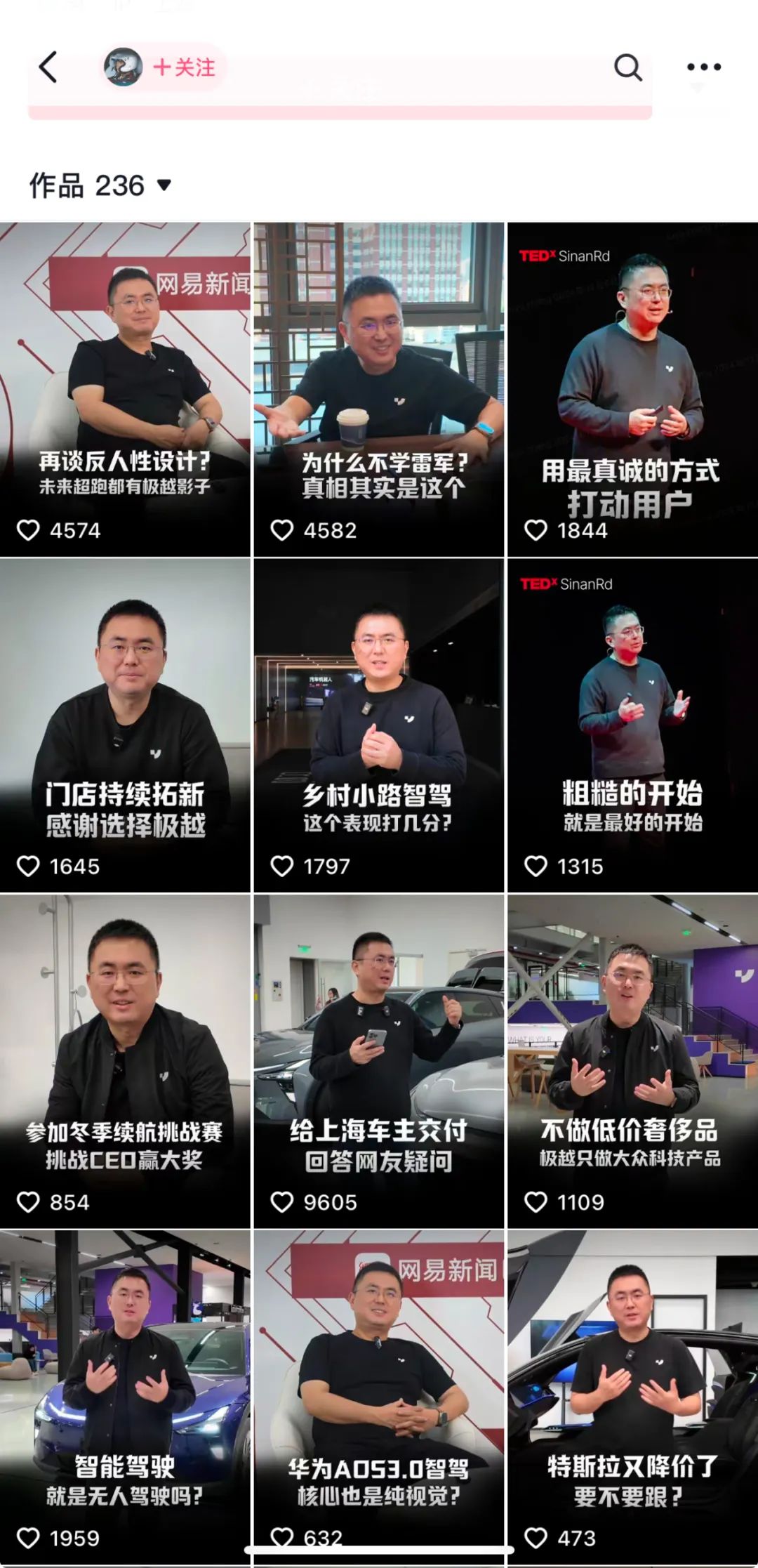 据Tech统计,自3月15日开通Tech账号以来,夏一平一年发布了140多个视频,比何小鹏4年发布的还要多,频率都快赶上雷军了。比如只有8月份一个月,极越品牌就发布了13000个视频。