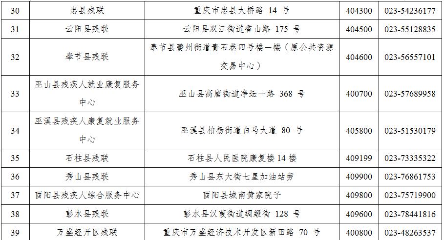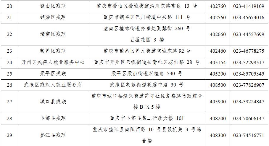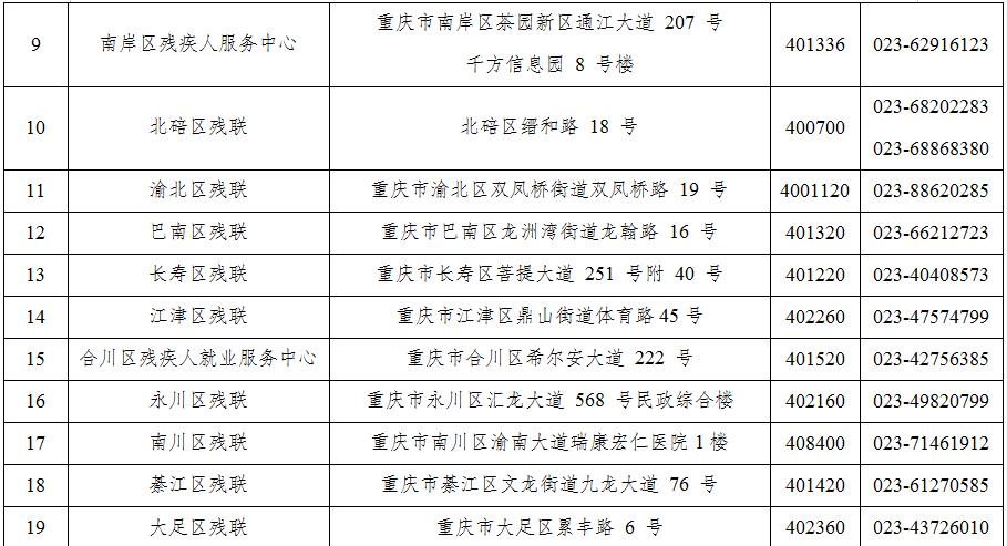 附件:各区县(自治县)安排残疾人就业情况网上认证服务窗口地址及咨询电话表