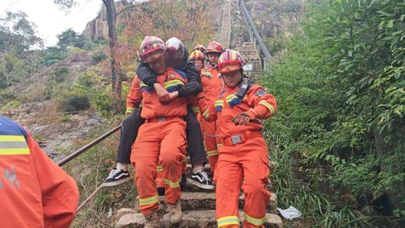 2024年11月30日,一位60岁的老人在徒步旅行中不小心踩到了空中,摔倒了,被困住了。到达现场后,由于山体陡峭,很难救援。消防救援人员立即携带多功能担架、救援绳包等救援工具,与医护人员一起在山上行走约7公里后,终于在崎岖不平的小路上发现了被困的老人。经过大约4个小时的救援,老人成功转移到了山下。