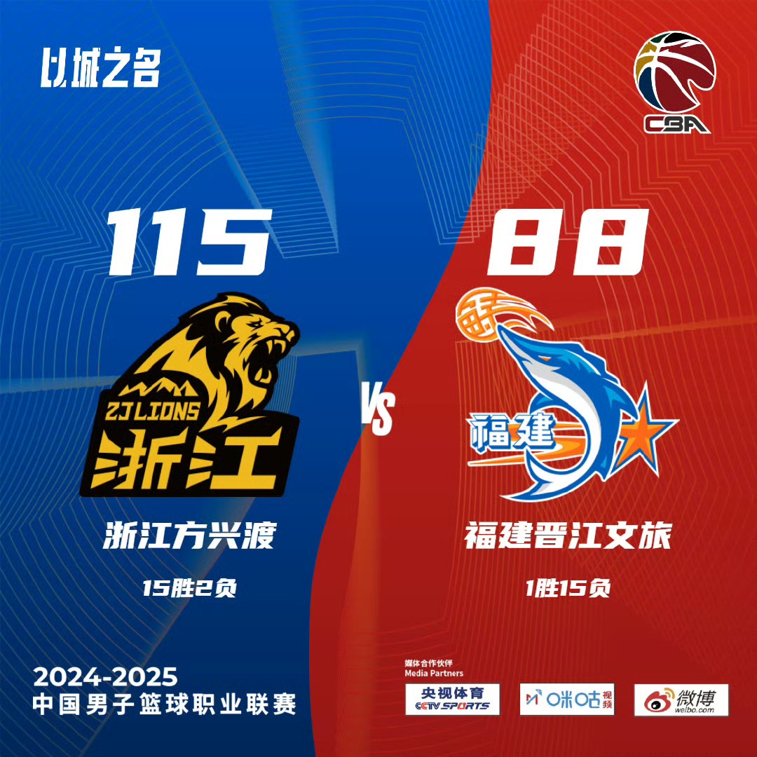 下半场,福建连投努力缩小分差,广厦多点开花保持大比分优势,广厦在最后一节脚踏实地保持优势。最后,广厦以115-88击败福建。广厦三人得分20分,胡金秋得分20分9板6助,布朗得分24分10助5断,奈特得分20分9板。