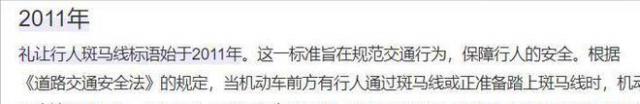 这几个字本身没有问题,但实际上,“礼貌行人”出现在斑马线上的时间是什么? 2011 年。