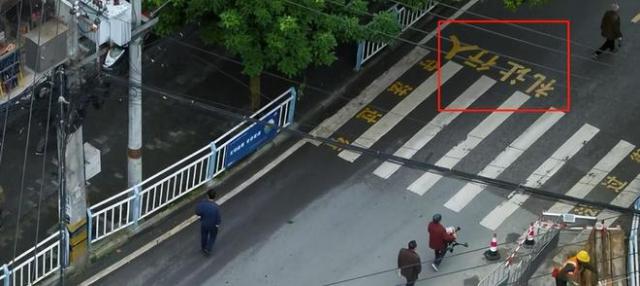 前面是一条斑马线,斑马线旁居然标着“礼貌行人”几个字。