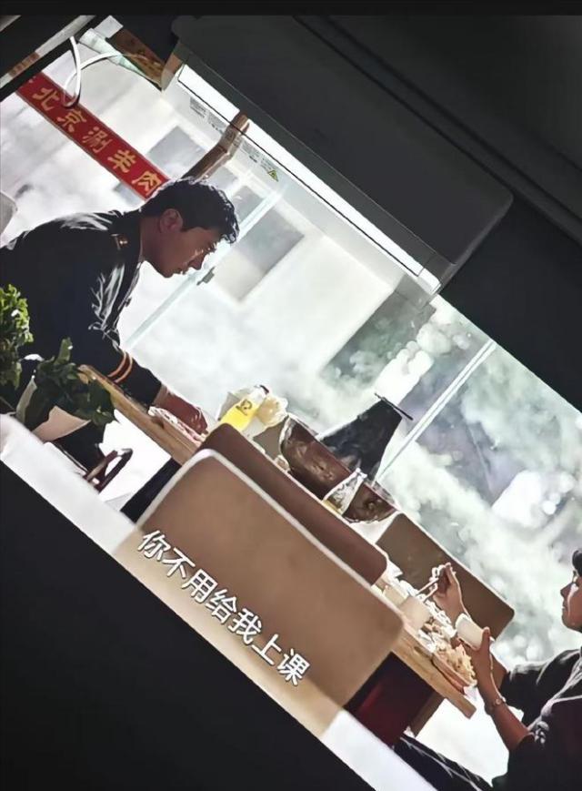 但是在拍摄李文等人吃饭的场景时,后面的窗户上赫然挂着一条红色的横幅,上面写着:老北京涮羊肉!