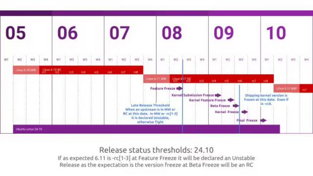 Linux 6.14 核心预估 2025 年 3 月发布,而 Ubuntu 25.04 发行版将在 3 月 20 每天进入核心功能冻结(Kernel Feature Freeze),4 月 3 每天进入核心冻结(Kernel Freeze),正式版于 2025 年 4 月 17 日推出。