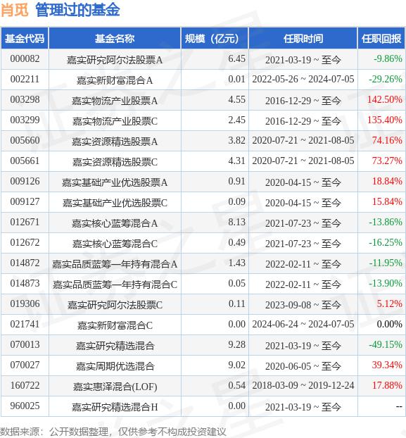 肖觅先生:中国国藉,管理硕士,具有基金从业资格。2009 年 7 每月加入嘉实基金管理有限公司担任研究部,先后担任钢铁企业、交通运输行业研究员等职务,现任大周期研究总监。2018 年 3 月 9 日至 2019 年 12 月 24 日任嘉实惠泽灵活配置混合型证券投资基金 ( LOF ) 基金经理。2016 年 12 月 29 到目前为止,任嘉实物流产业股票型证券投资基金主管。2020 年 4 月 15 日本是嘉实基础产业优选股票型证券基金的基金经理。2020 年 6 月 5 日起担任嘉实周期优选混合型证券投资基金基金主管。2020 年 7 月 21 日至 2021 年 8 月 5 日任嘉实资源精选股票基金主管。2021 年 3 月 19 日本担任嘉实研究精选混合基金主管。2021 年 3 月 19 到目前为止,嘉实一直在研究阿尔法股票型证券投资基金的主管。2021 年 7 月 23 到目前为止,任嘉实核心蓝筹股混合型证券投资基金主管。2022 年 2 月 11 到目前为止,任嘉实质量蓝筹股一年持有期混合型证券投资基金主管。2022 年 5 月 26 日至 2024 年 7 月 5 灵活配置混合型证券投资基金的日任嘉实新财富基金经理。