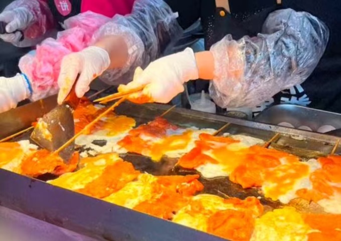 表面是酥脆的烧饼,里面有各种各样的荤素炸串,加上甜辣酱、孜然等调料,烧饼夹里脊其实更像是中国汉堡。“一切都可以夹住”的属性让这个来自街道的“中国汉堡”有了很大的想象空间。