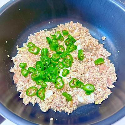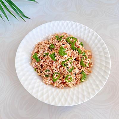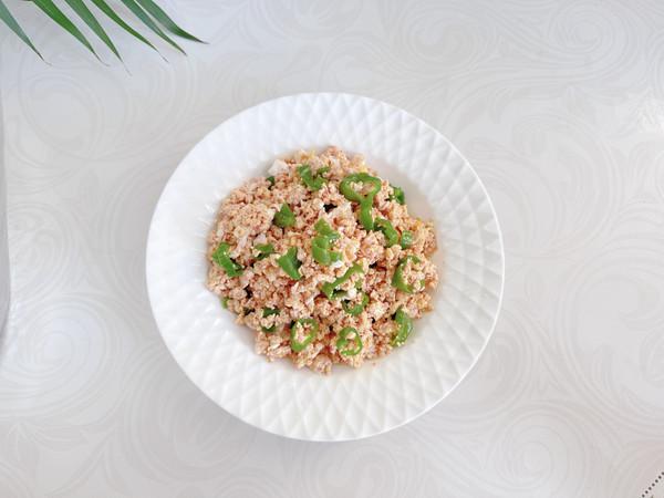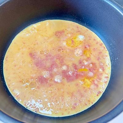 4、锅内加入食用油,加入混合好的蛋液翻炒至形成