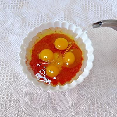 2、虾酱➕鸡蛋➕温水 40 mL,搅拌均匀备用