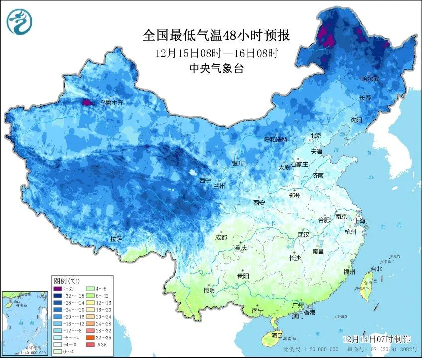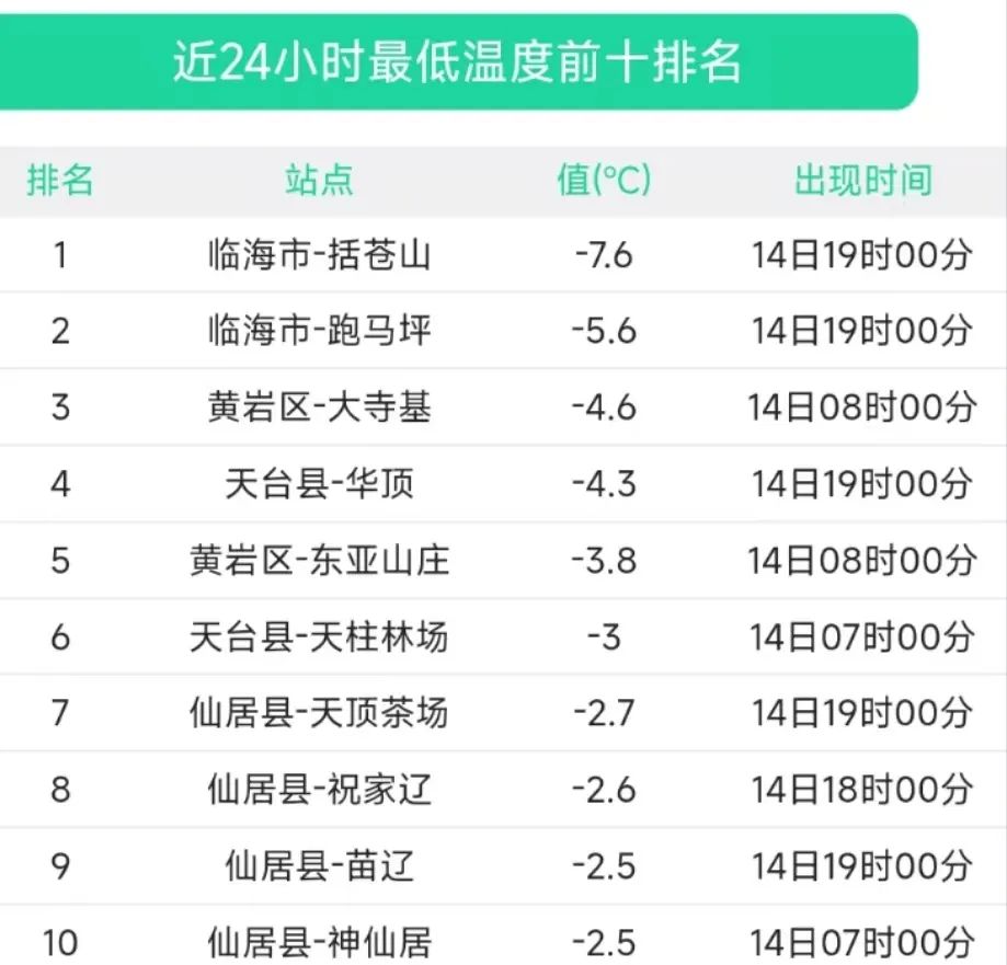 早晨最低气温:北部地区-2~-4℃,有冷冻;其他地区0~2℃,有霜降或薄冰。