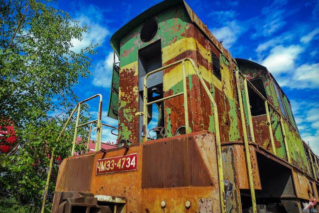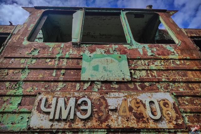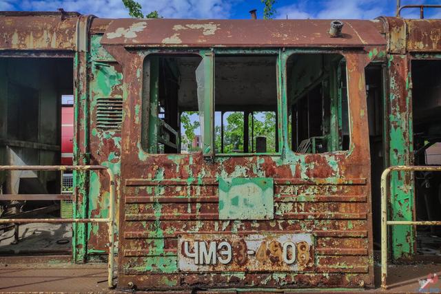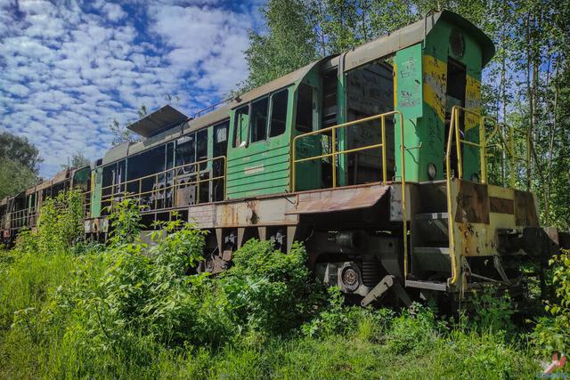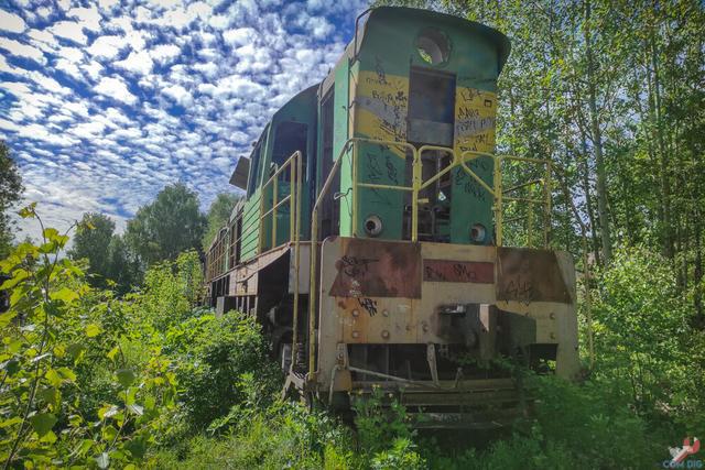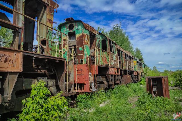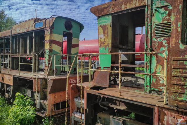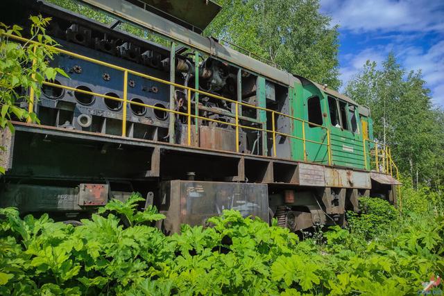 荨麻和野草逐渐占据了这个区域,而令我们惊讶的是,这里居然隐藏了六套旧的。 ЧМЭ 3型柴油机车(CME3),它们在室外环境中生锈,并逐渐被破坏和抢劫。
