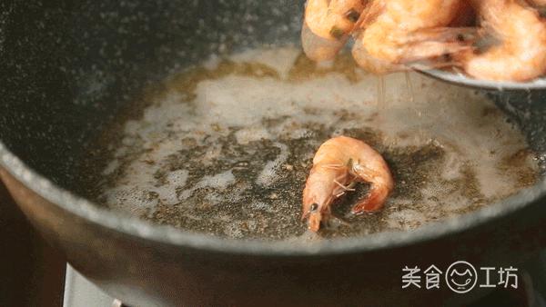 6. 油热至 8~9 成年后,将虾回锅翻炒,沥油备用。