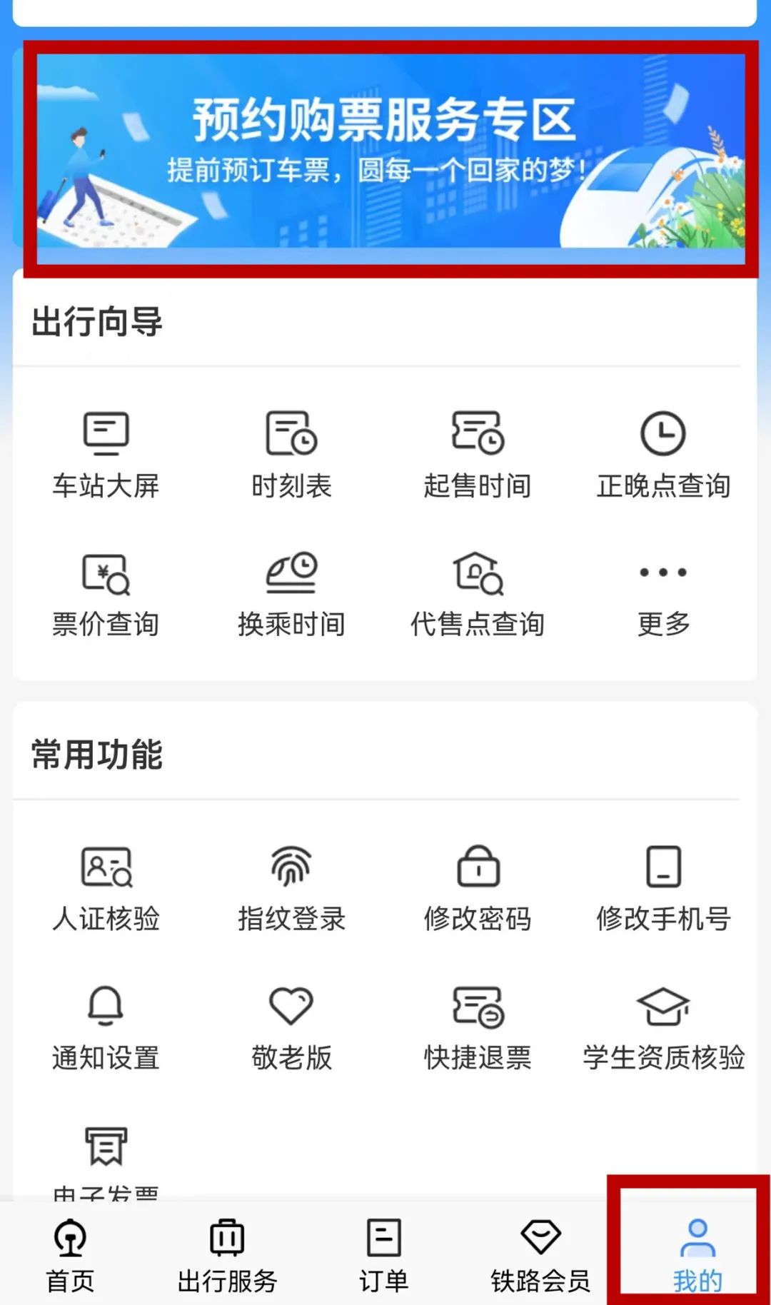 进入“预约购票服务区”