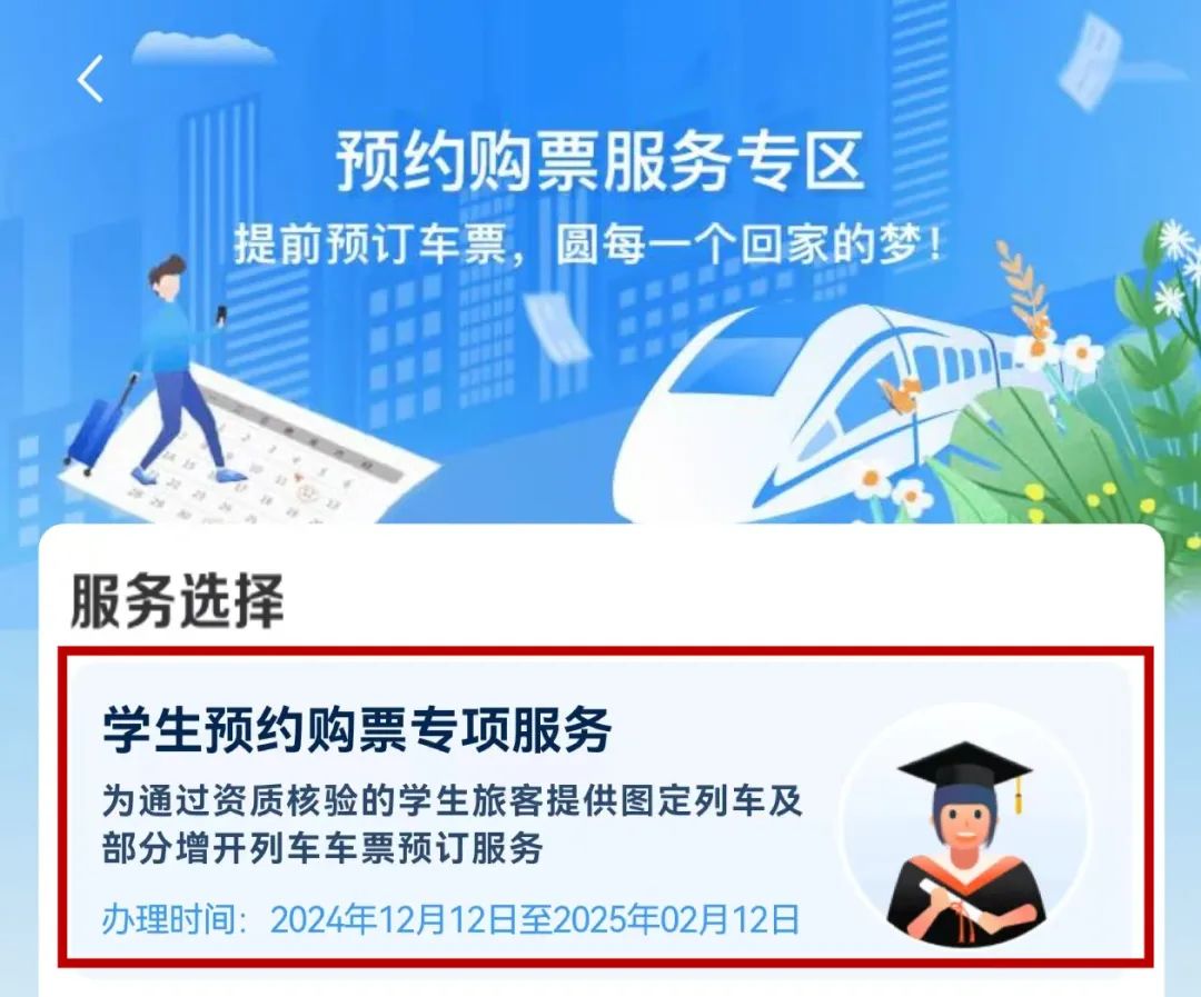 选择“学生预约购票专项服务”