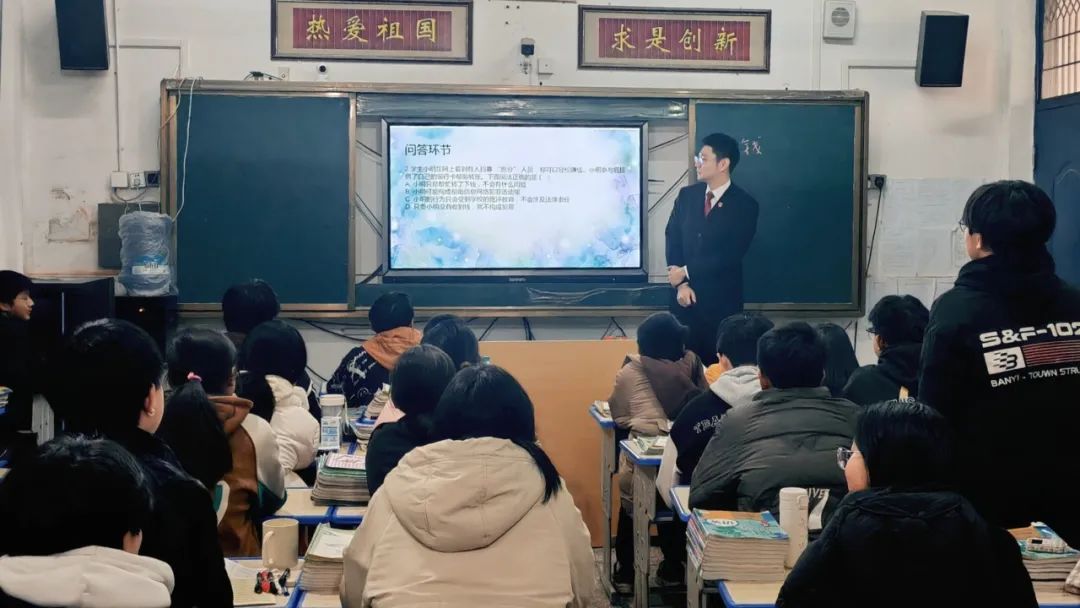 在课堂上,法官宋梅军从民事行为和刑事责任年龄的划分入手,用简单的方式解释了中学生在日常生活中会涉及的各种行为对应的民事和刑事责任。在提到热点的电信诈骗和校园欺凌时,我们深入分析了其危害的根源,并结合校园实际案例,为学生传授了实用的预防技巧和对策,鼓励大家积极维护学校安全和自身权益。