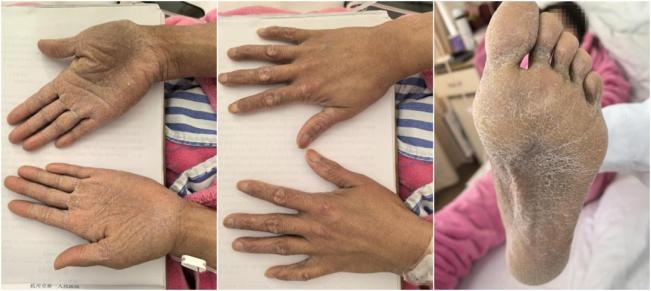 最近黄女士总觉得浑身无力,肚子胀,全身皮肤“黑”,手掌和脚底特别明显。此外,她还有发烧、月经失调、手脚麻木、食欲不振等症状,所以去医院看病。