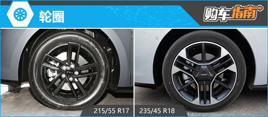 车轮方面,提供新车 17 英尺和 18 两种轮毂,英尺。其中,17 英尺星曜铝合金车轮匹配 215/55 R17 规格车胎;18 英尺星锁铝合金轮毂匹配 235/45 R18 规格车胎。